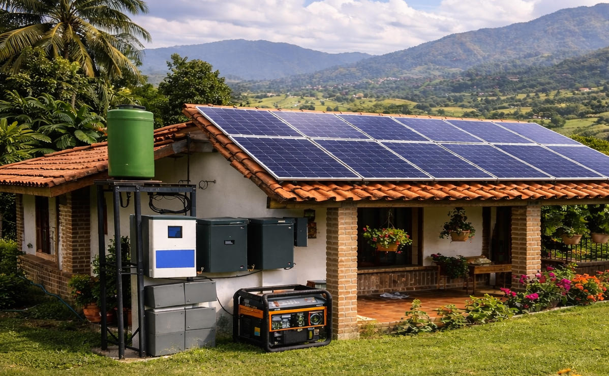 Un sistema híbrido combina generación solar, respaldo con baterías y conexión a la red. Prioriza el autoconsumo, guarda energía para picos o cortes y decide de forma inteligente de dónde tomar o a dónde enviar la energía para reducir costos y asegurar continuidad.